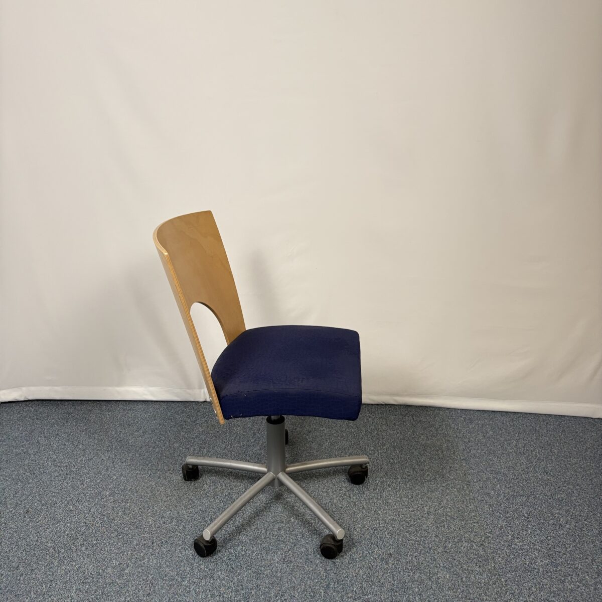Fauteuil collaborateur Kinnarps Yin en tissu bleu et bois