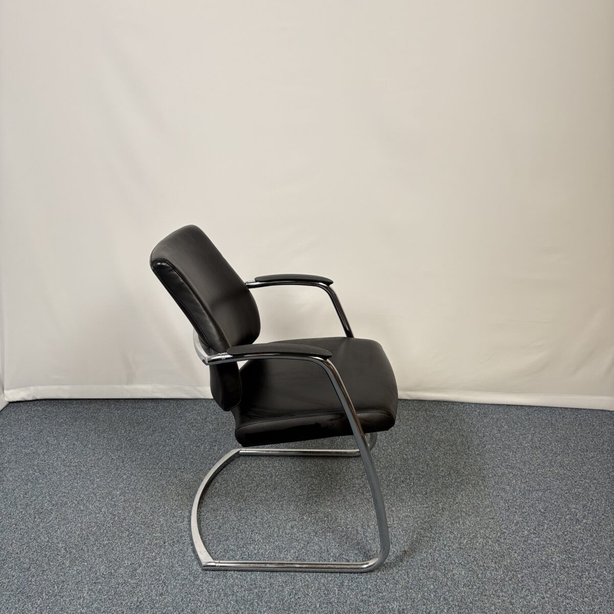 Apportez confort et élégance à vos espaces professionnels avec le siège visiteur en métal et cuir noir avec accoudoirs. Son revêtement en cuir de qualité et sa structure métallique robuste offrent une assise agréable et durable pour vos visiteurs. Idéal pour salles d’attente, réunions ou bureaux individuels, ce siège combine design contemporain et fonctionnalité. Durable et écoresponsable, il s’inscrit dans une démarche de mobilier à seconde vie pour une économie circulaire.
