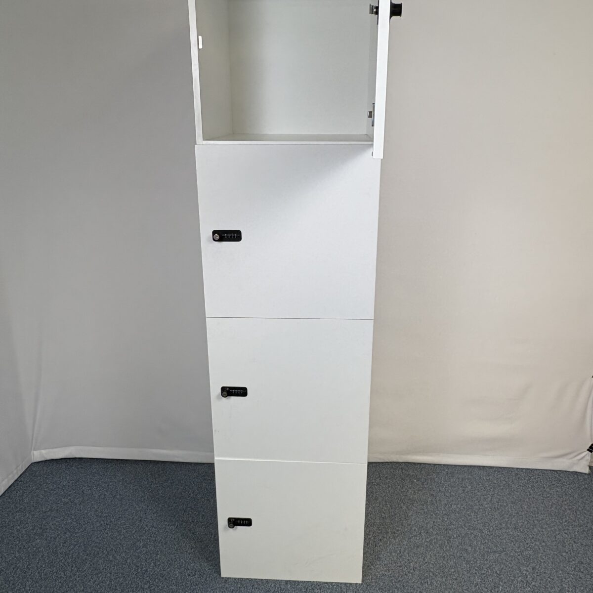 Le grand casier de rangement en bois blanc proposé par 1001 Buros est la solution idéale pour organiser vos espaces professionnels ou collectifs en alliant sécurité, fonctionnalité et esthétique. Grâce à sa structure en bois mélaminé, son coloris blanc sobre et ses portes verrouillable à code, ce meuble répond aux besoins de rangement sécurisés pour les effets personnels, les documents ou le matériel d’entreprise. Pensé pour durer, il s’insère aussi bien dans un bureau, un espace de coworking, un atelier ou tout autre lieu professionnel nécessitant un rangement fiable et discret.