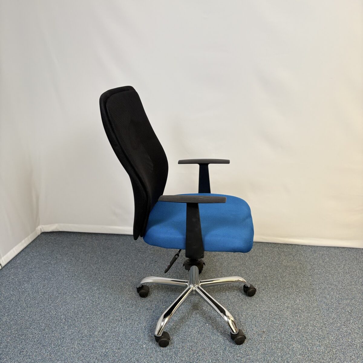 Le siège bleu et noir se distingue par sa palette bicolore, qui lui confère un look professionnel tout en restant accueillant. Le contraste entre le bleu et le noir lui permet de s’intégrer facilement dans différents environnements sans perturber l’harmonie visuelle. Que ce soit dans un open space, un bureau individuel ou un espace d’accueil, ce siège apporte une touche contemporaine et raffinée.