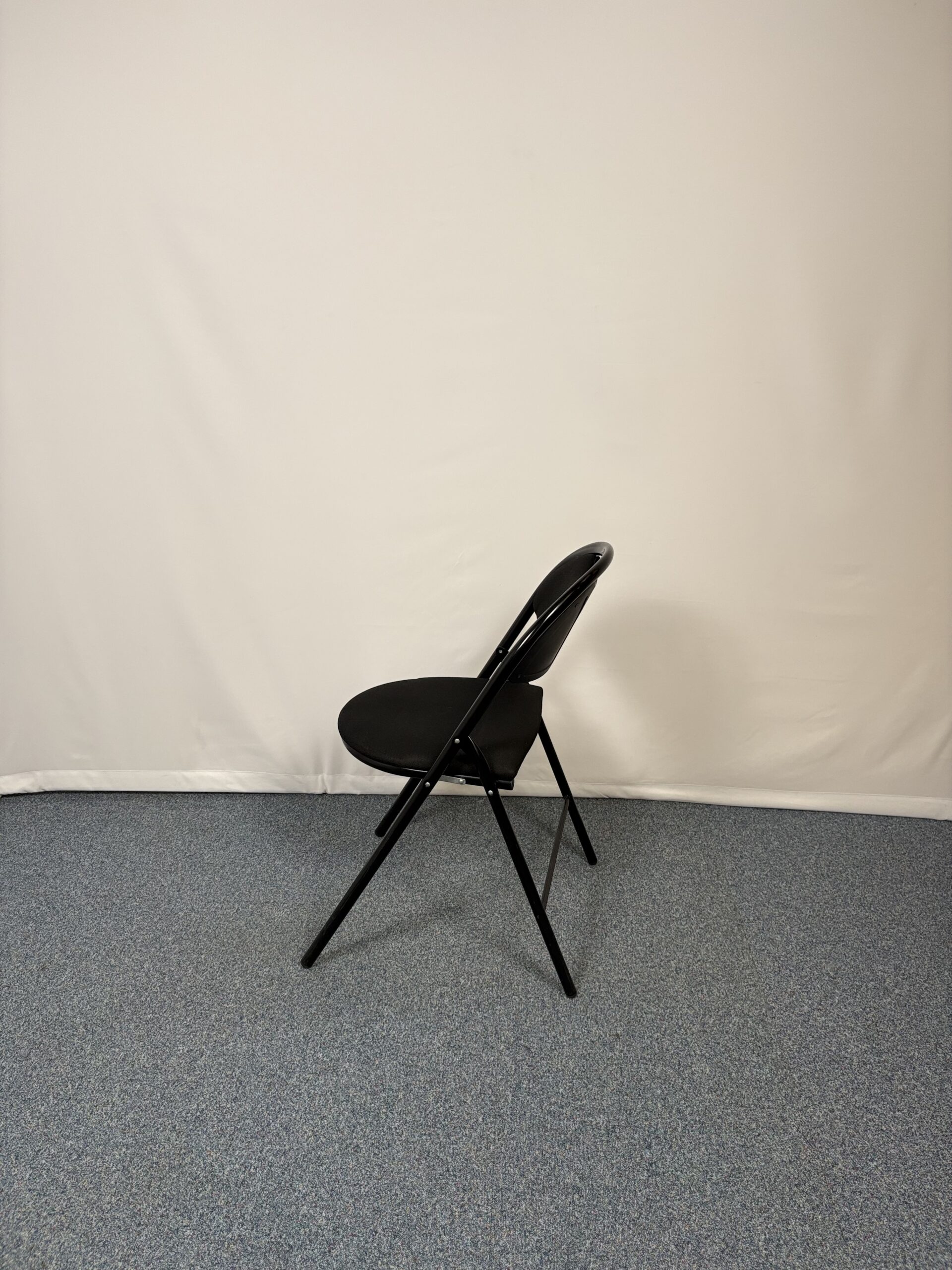 Chaise visiteur en métal et tissu noir pliante avec roulettes