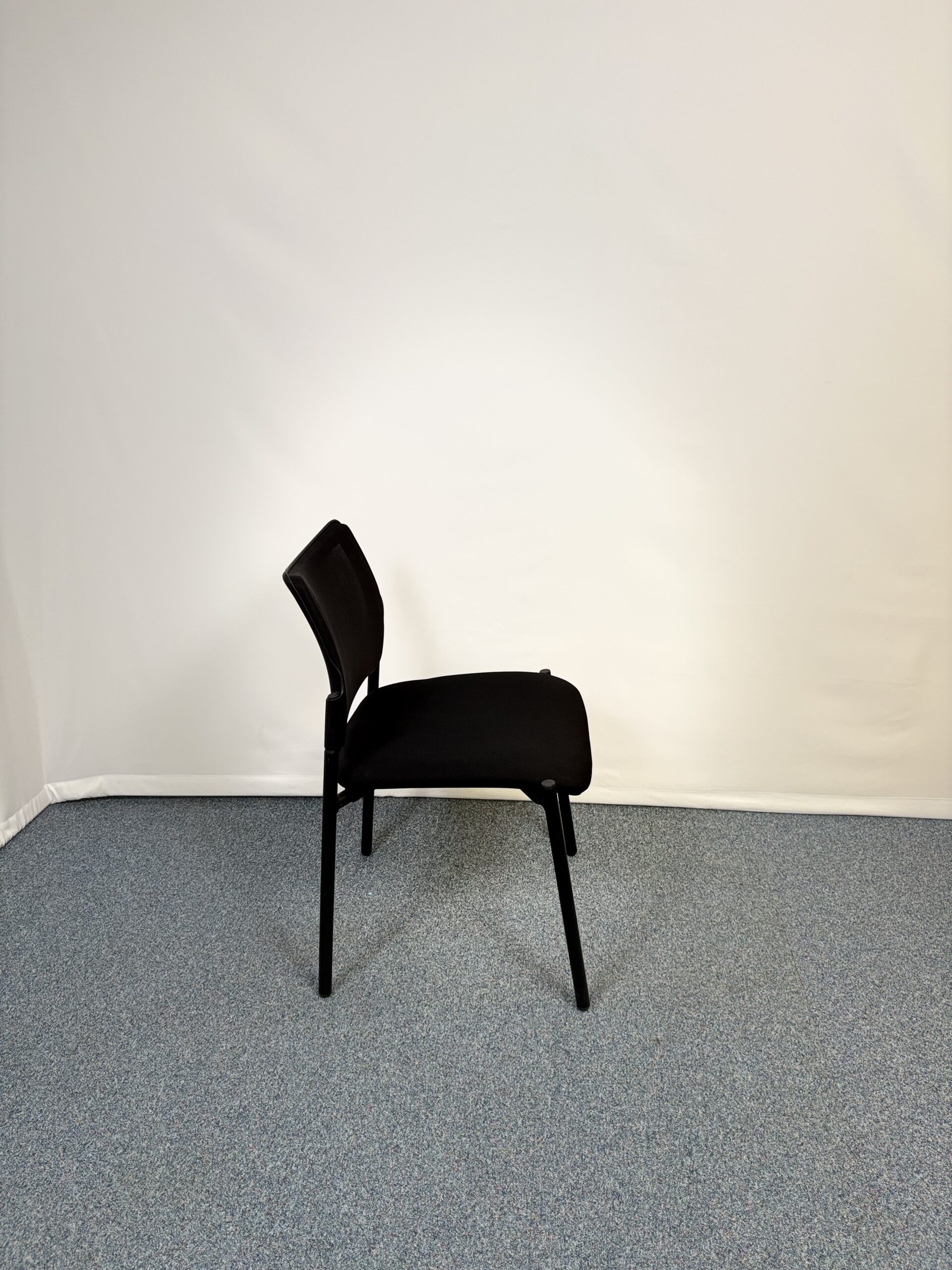 La chaise offre un soutien lombaire modéré, grâce à un dossier bien conçu et profilé. Le revêtement tissu et plastique aide à maintenir une posture saine, tout en assurant une ventilation confortable pour les visiteurs.