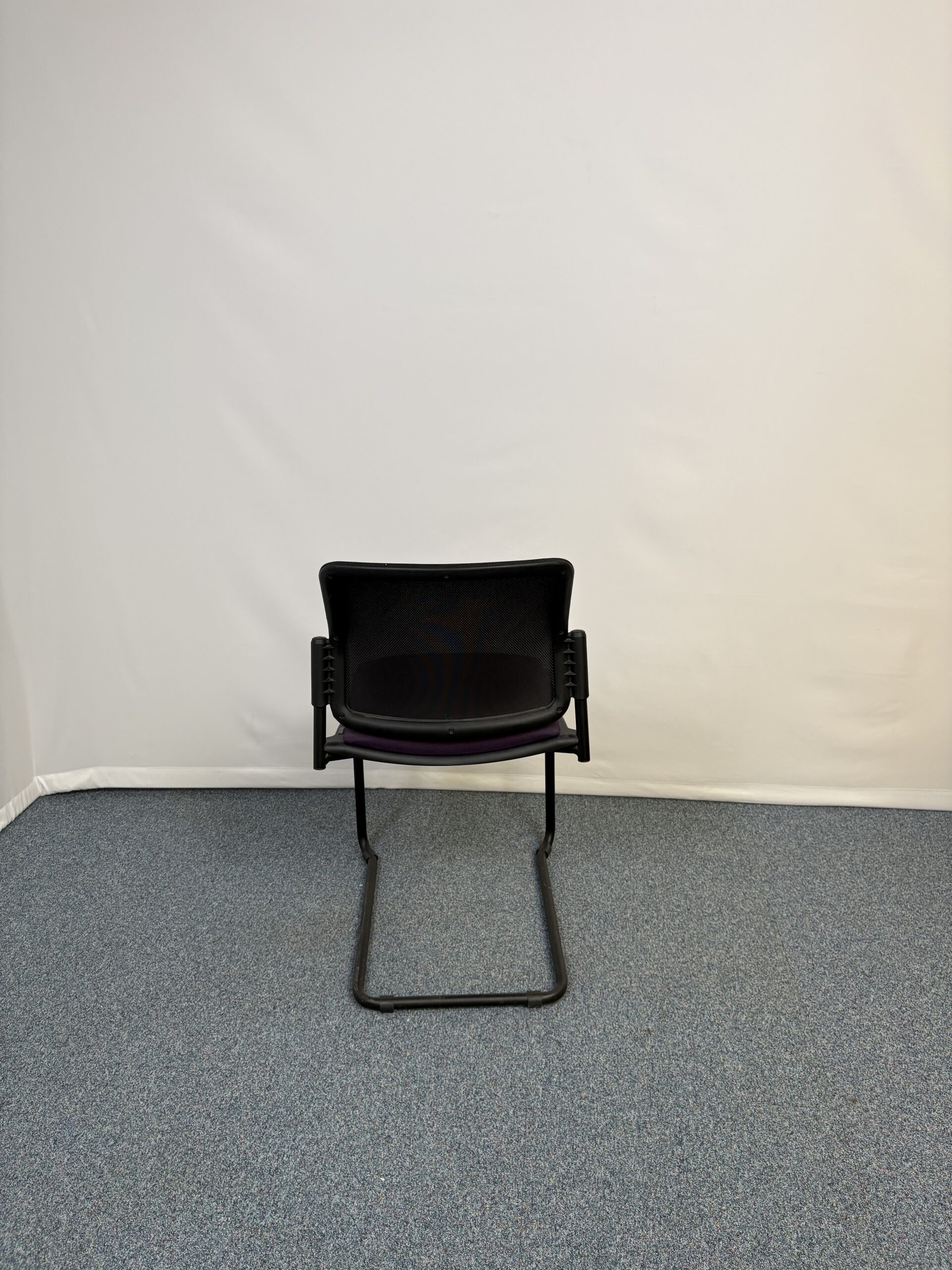 Chaise de réunion noire en métal et tissu avec roulettes et pliable