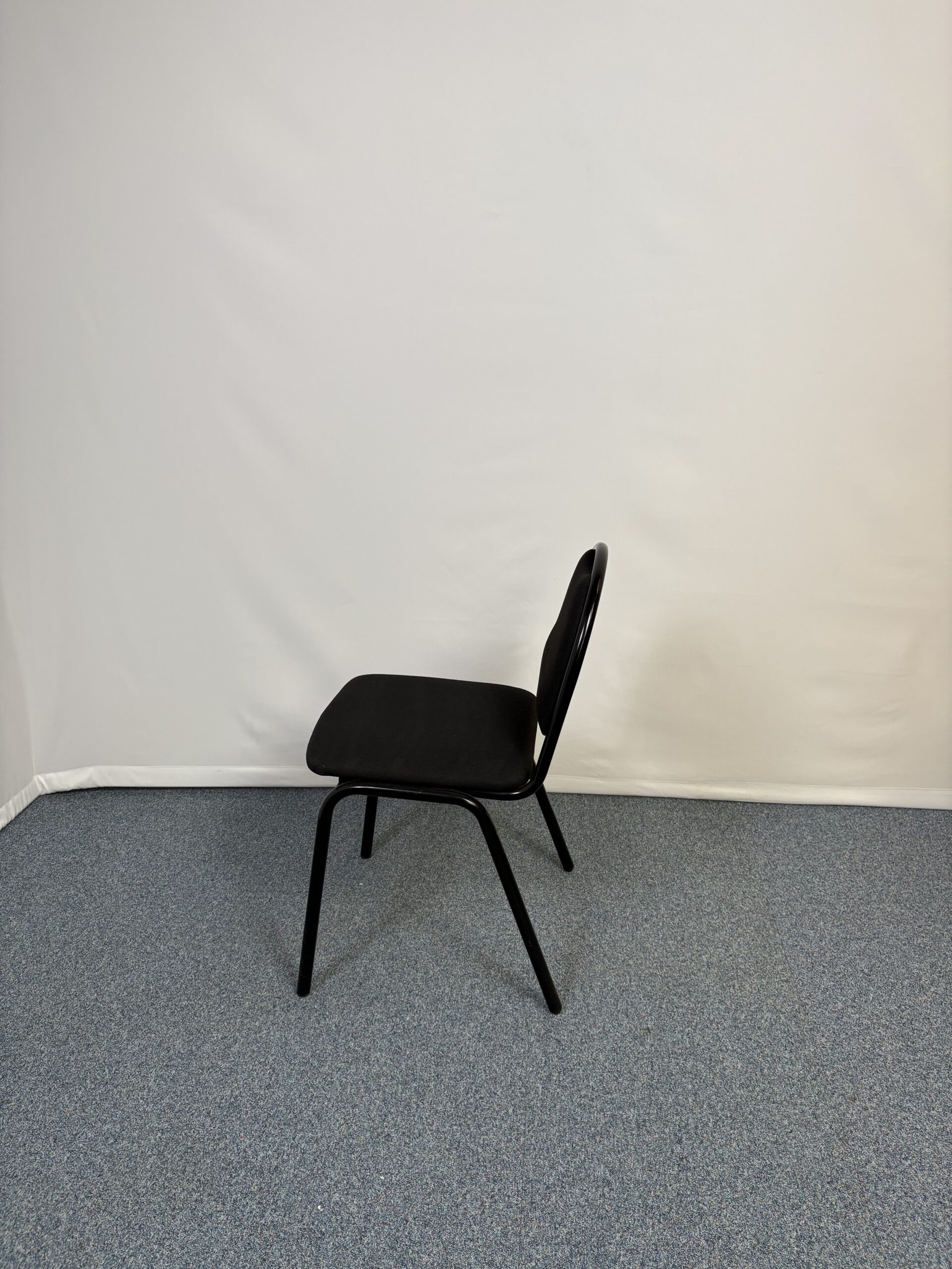 Chaise visiteur en métal et tissu noir pliante avec roulettes