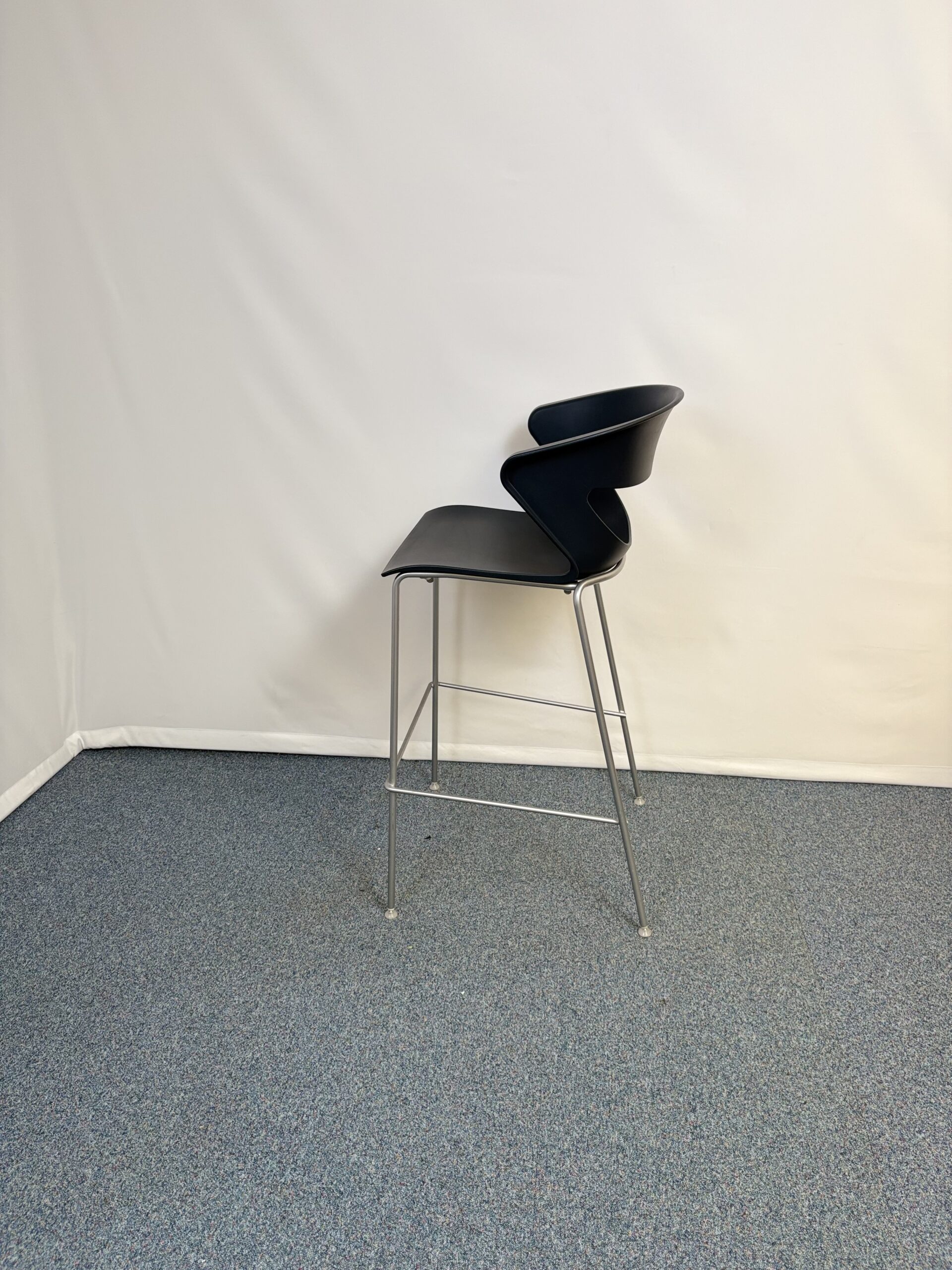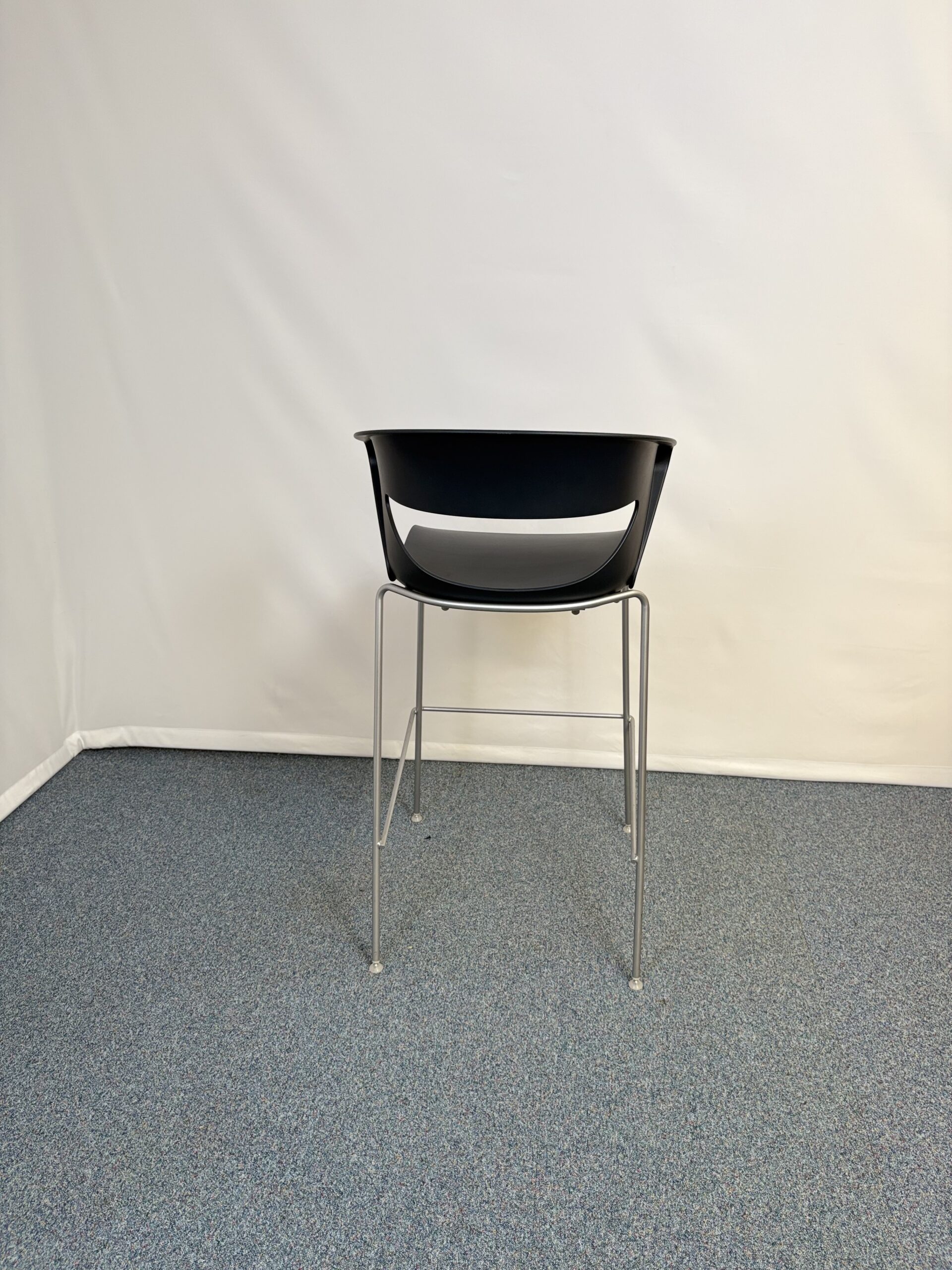 Tabouret Vitra design cuir noir et métal avec dossier et repose-pieds