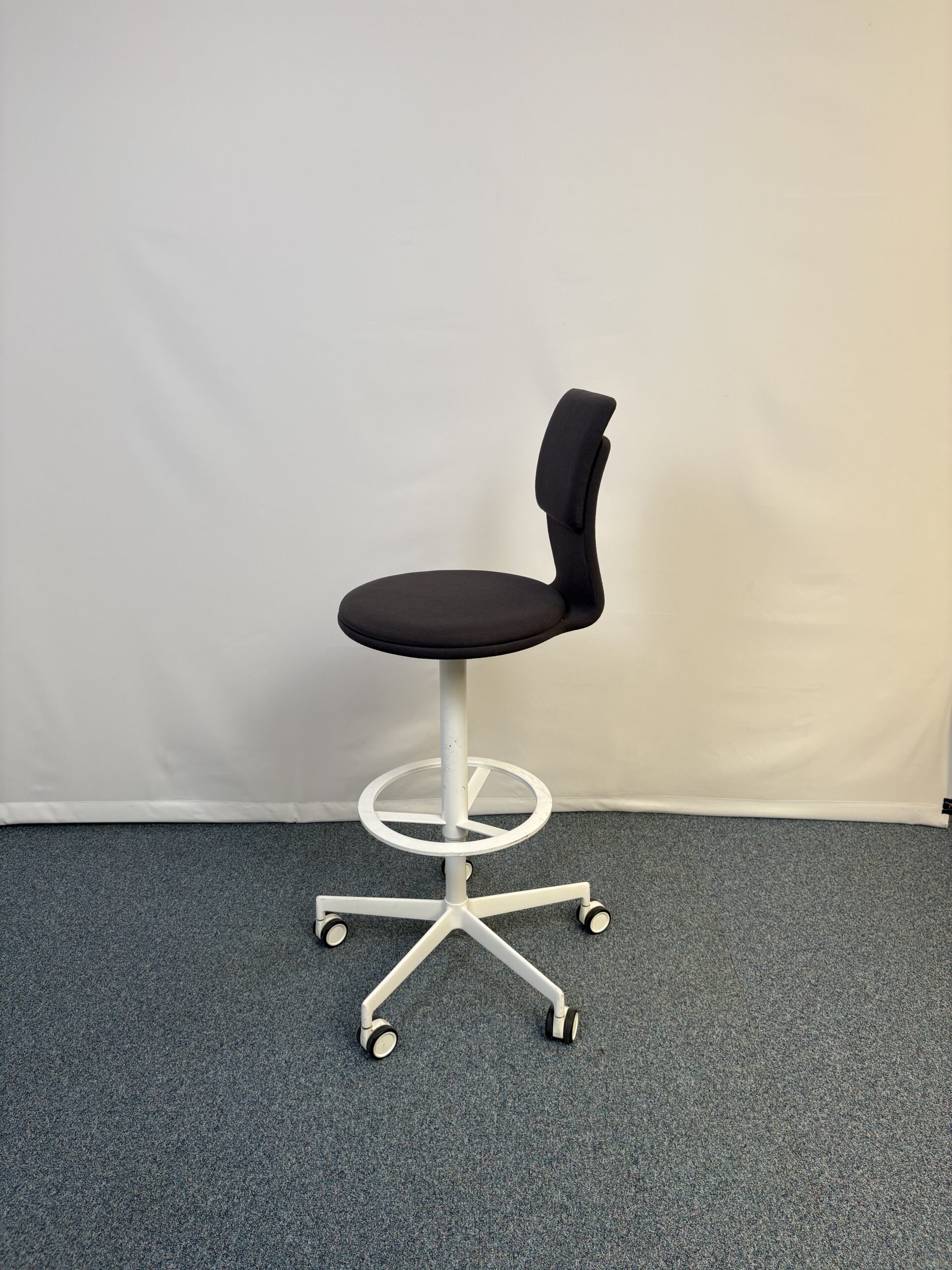 Tabouret Löffler métal et tissu noir à roulettes